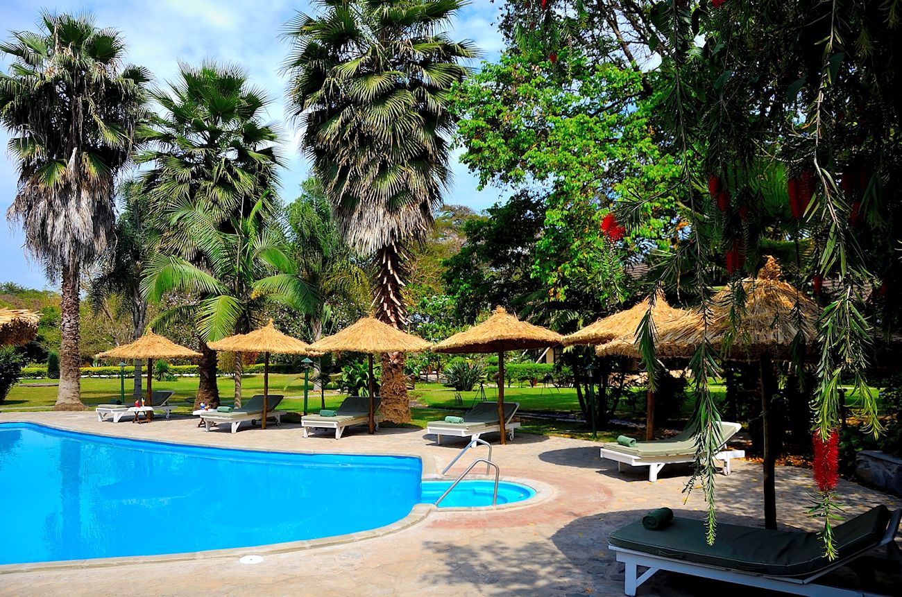 Die Arumeru River Lodge liegt im Osten von Arusha in ca. 35 Minuten KFZ- Entfernung zum Kilimanjaro International Airport. Die Lodge liegt in absoluter Ruhe (außerhalb von Arusha) und verfügt über einen weitläufigen tropischen Garten. Von hier aus hat man einen unvergleichlichen Blick auf die Berge des Kilimanjaro und Meru. Die Lage ist ideal bei Ankunft am Abend am Kilimanjaro Flughafen und am Ende einer Safari, da die Entfernung nicht weit bis zum International Airport ist. Und auch für einen Ausflug in den Arusha Nationalpark ist die Lage bestens geeignet, da es bis zur Momela Roud nur knapp 3 km sind. Auch für Kilimanjaro Besteigungen ist unsere Lage optimal. Wir heben Ihr Gepäck sicher auf, während Sie den Berg bezwingen und warten mit einem kalten Bier, einer heissen Dusche und einem wunderbaren Garten zum Entspannen auf Ihre Wiederkehr.