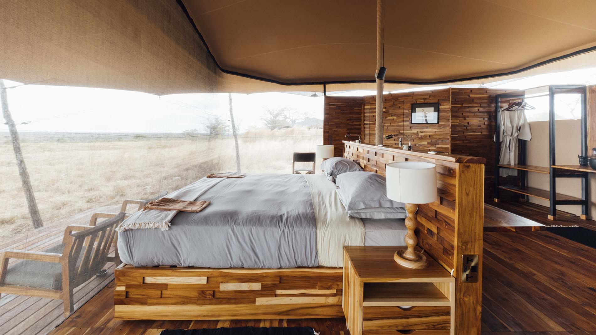 Jedes Zelt ist relativ einfach gestaltet, achteckig und durch einen stilvollen Paravent in zwei Bereiche unterteilt. Im vorderen Bereich befinden sich entweder ein Doppelbett oder zwei Einzelbetten mit zwei bequemen Stühlen, während sich im hinteren Bereich ein Badezimmer mit zwei Waschbecken, einer Dusche und einem Kleiderschrank befindet.