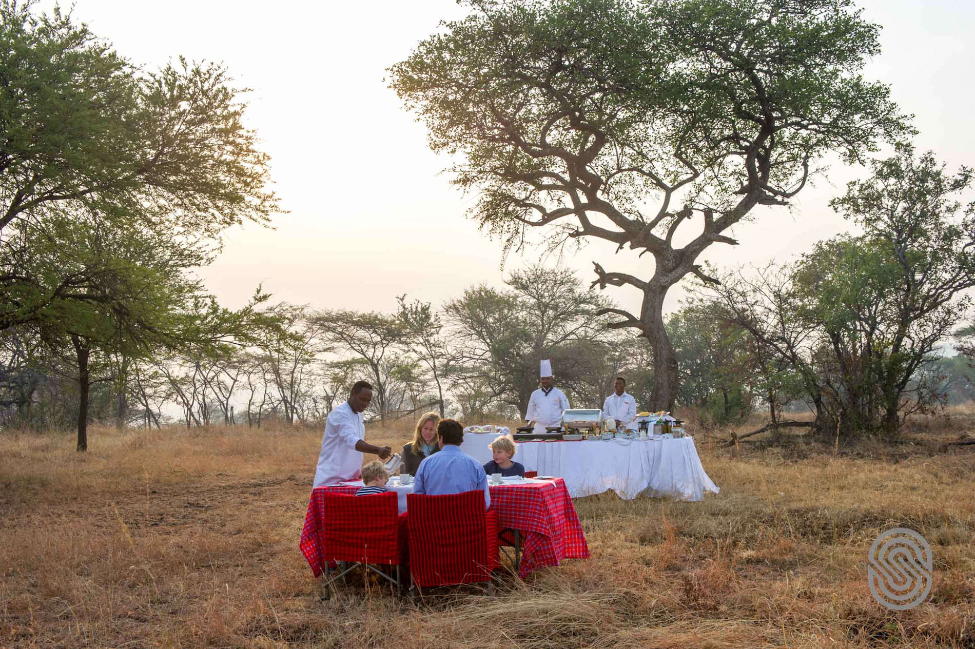 Das Speisezelt ist ebenfalls opulent ausgestattet und nimmt die koloniale Atmosphäre des Camps mit wertvollem Geschirr und Silberbestecken wieder auf. Bedient werden die Gäste vom in weißen langen Swahili Gewändern und Turbanen gekleideten Personal. Natürlich werden Ihre persönlichen Diätanforderungen gerne berücksichtigt.