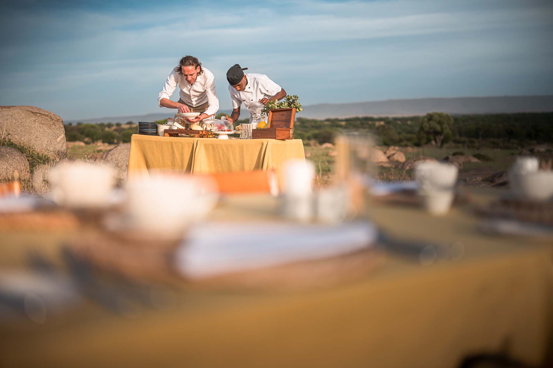 Im Gemeinschaftsbereich erwartet die Kunden ein eleganter Zeltbau im Beduinenstil, ausgestattet mit handgefertigten Möbeln, gemütlichen Lounge-Sesseln, offen platzierten Bibliotheksecken und einer Bar – stets mit Blick auf die endlose Serengeti.