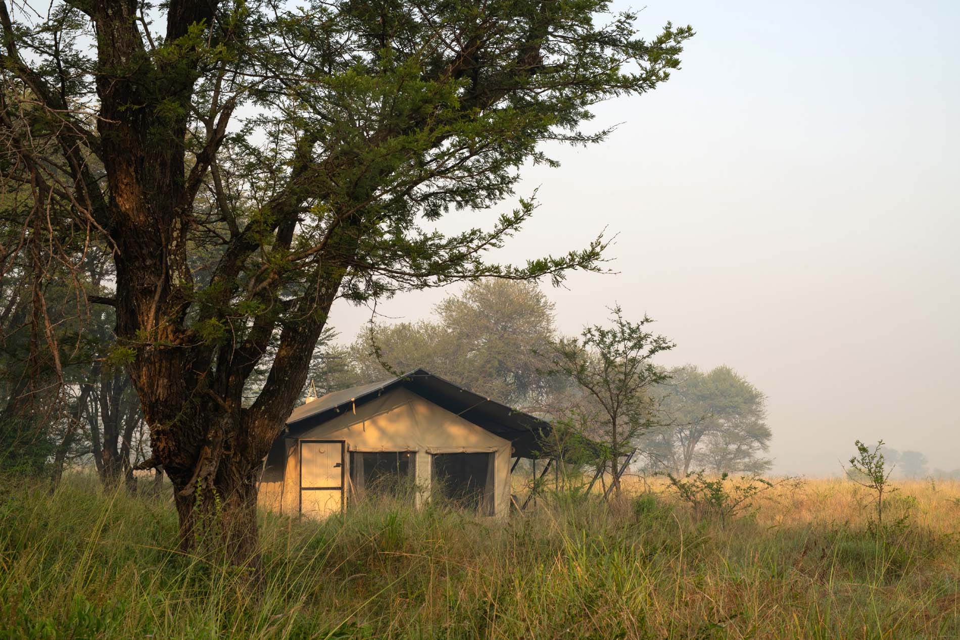 Die zehn Zeltzimmer sind schlicht, aber gut gestaltet und verfügen jeweils über ein stabiles Bett (das bei Bedarf in zwei Einzelbetten umgewandelt werden kann) und einige Regiestühle. Die Farben sind eher gedeckt und in einem angenehmen Grauton gehalten. Fenster an drei Seiten des Zeltes lassen viel Licht herein und die gesamte Atmosphäre ist schlicht, aber stilvoll.