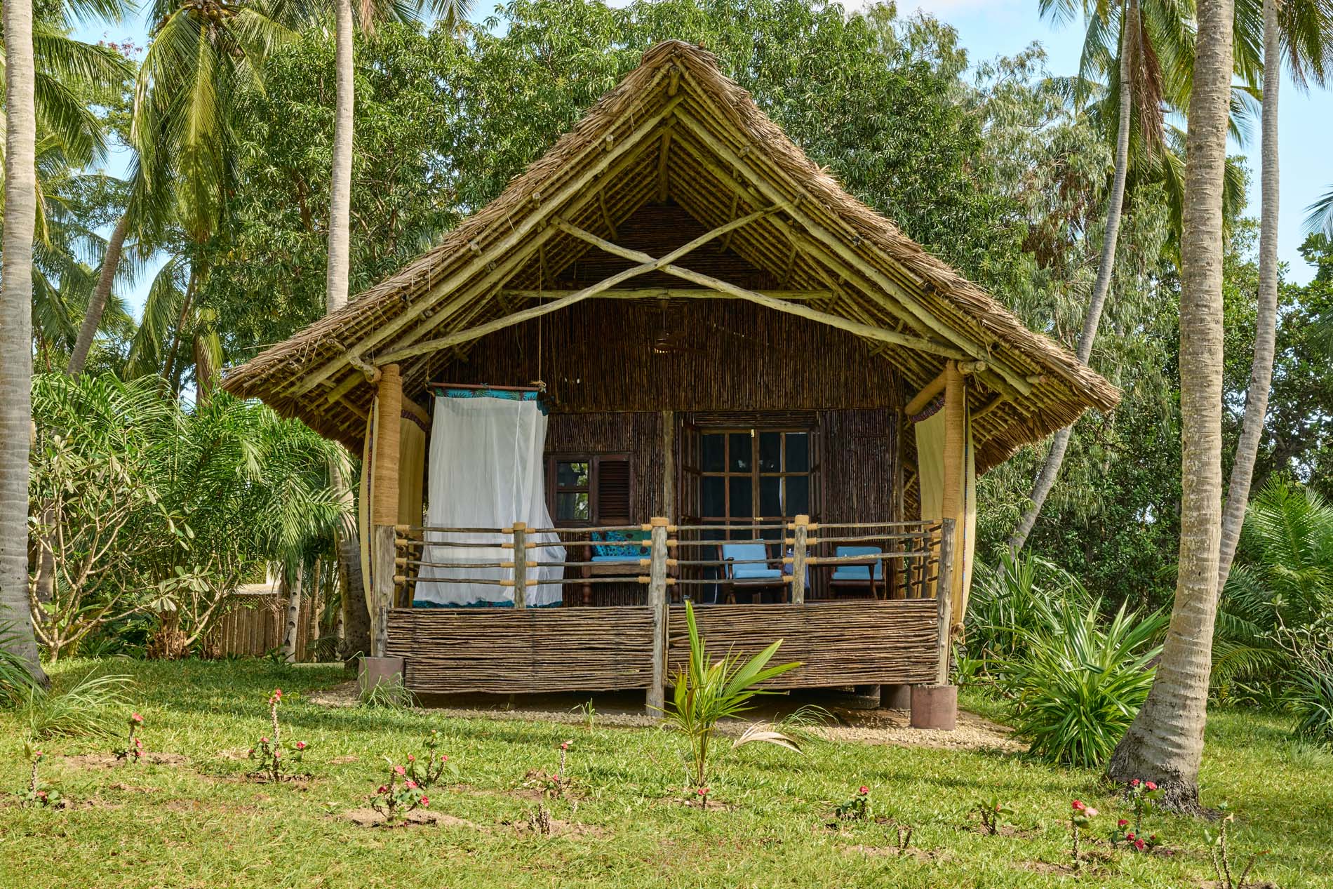 - Elegant und geräumig, liegen sie inmitten von Kokospalmen mit Blick auf die Chole-Bucht.