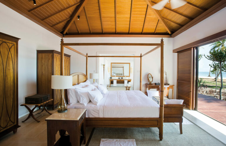 Alle 66 Villen sind luxuriös mit stilvoll-zeitgenössischem Mobiliar eingerichtet, gekonnt inspiriert vom afrikanischen und omanischen Erbe der Insel. Insgesamt gibt es 6 verschiedene Suiten-Kategorien, wobei die kleinsten mit Pool und Außenbereich – das bieten alle Suiten – bereits über 155 Quadratmeter Fläche verfügen.